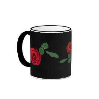 Zazzle mug from Bebops: Red RoseThis elegant mug features three exquisite scarlet red roses, each with three green leaves, against a black background.Visit Bebops's store Join Bebops's fan club |